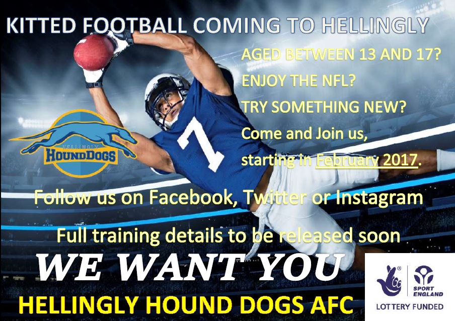 So if you are aged 8 to 18, and fancy trying American Football, contact us via email hellinglyhounddogs@hotmail.com, or on Facebook, Twitter and Instagram